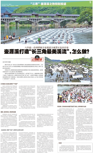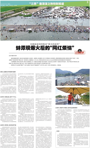 9月4日,本报用三个整版推出《“三思”壶源溪之热特别报道》,文末抛出“三问”:蚌潭坝该如何从网红变长红?壶源溪流域怎么抓住两大网红、整合上下游,把“泡坝”文章做足做大?在进一步全面深化改革、推进中国式现代化的时代背景下,乡村文旅伴生的新业态与政策约束之间的矛盾如何解决?9月10日,本报邀请壶源溪流域的组团乡镇湖源乡、常安镇、场口镇与相关部门、社会各界人士做客“民声议事厅”,通过开放、深入、平等地交流探讨,为壶源溪流域景区化、组团化发展建言献策。