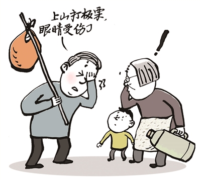 大伯上山打板栗,不慎被板栗砸伤眼睛