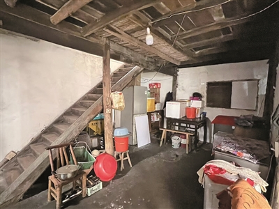 蔡九余老人的房子原是船坞山上的一栋木质结构老宅,后来整栋房屋被拆解并重新组装在现址。这栋木头、黄泥和稻草混合结构的房屋,历经风雨侵蚀,墙面开裂,内部昏暗且地面不平,条件十分艰苦。特别是卫生间和厨房,更是简陋至极,给蔡九余夫妇的生活带来了极大不便。