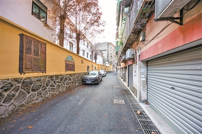 后河西路上,因天然的高低差,南侧被改造成青砖墙,砖墙上是赭色的仿古围栏。而小路南侧,原本为一楼居民的封闭式小院,一整条水泥墙不仅美感全无,上面还有居民自己改建的小门,显得杂乱无序。改建拆除了水泥墙,并且为这些小院设计了仿古屋顶、围栏等,形成沿路一个个美观且亮堂的小花园,让一条不长的后河西路完全变了样,颇具网红打卡点潜质。采访过程中,我们便路遇几位拍摄短视频的市民,这处复古调拉满的老小区成了镜头里地地道道的老底子味道。