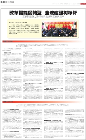 2025年是“十四五”规划的收官之年,是全面贯彻落实党的二十大精神的重要之年。作为富阳的城关街道,富春街道将勇当全能先锋,扛起标杆大旗,以迈上新台阶、实现新跃升为目标,平稳完成村级组织换届,奋力打造振奋人心的标志性成果,努力走在前、争示范,以城关街道的使命担当,全力打造现代版富春山居图中轴画卷新愿景。