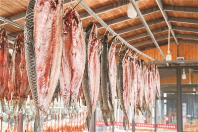 忠杭垂钓园负责人葛金龙介绍,五丰鱼干一直坚持最土最传统的制作方法,捕捞青鱼宰杀后,两面均匀地撒上一层粗盐,腌制一天一夜后清洗干净。腌制好的鱼是晾干的,不是在太阳下晒,而是一条条挂在岛上迎风的那一面,接受霜冻和冷风,江风会带走多余的水分,晒出亮油来才够味。“买回家的鱼干,不用放任何佐料,红烧、清蒸,都非常鲜美,原汁原味。”葛金龙说。