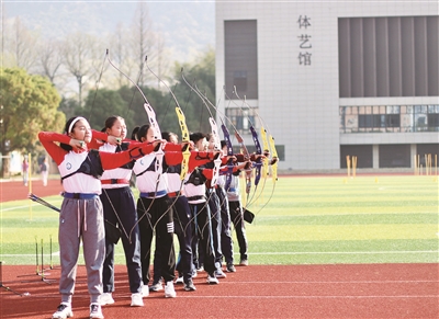 杭州市中小学生阳光体育射箭比赛团体总分第一名、富阳区中小学生种子杯篮球赛男女组亚军、富阳区中小学生足球赛男子乙组亚军、富阳区中小学生田径运动会小学A组团体总分第三名……极为亮眼的2024年体育答卷,可以说是富春六小近年来优质体育成绩的缩影。特别是特色项目射箭,已成为富春六小的一张靓丽金名片。“射箭比赛比的就是专注、稳定以及情绪控制、心态控制,射出的每一支箭看似轻松,却蕴含着队员们这一路走来的努力和付出。”富春六小射箭教练沈建彬老师说。据了解,富春六小射箭队成立于2020年11月,目前共有四个年龄段共计50名队员。同时,学校还成立射箭文化课题研究小组,开发校本课程《射箭》,坚持每学期举办射箭比赛,力求人人会射箭,打造校园射箭文化。