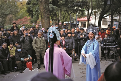 前日,恩波公园,“文化进万家,艺起迎新春”2025年富阳区文化惠民专场文艺演出正在举行,两位越剧演员的精彩表演,受到现场百余位老人的热捧。