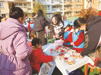 本报讯(记者 邵晓鹏 通讯员 闻雅)“自己做的瓜子饼干6元一包”“橘子灯5元一个”“刚刚从地里采摘的蔬菜5元一把”……近日,鹿山街道中心幼儿园内好不热闹,小朋友们在秋收冬藏市集义卖活动中,售卖自制美食、手工艺品,并将义卖所得的5000余元善款捐赠给富阳区滴水公益,用于慈善事业。