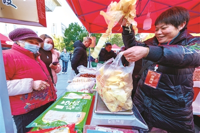 洞桥好味道炒货的摊位负责人沈立勇说:“这些炒货都是我们企业自己炒制的,很受欢迎,上午开摊到现在一个小时就卖了2000多元了。我们好味道从1999年注册成立,这么多年积累了很多老客。像每年年底的年货集市,就会有很多回头客是认定了我家来买的。”