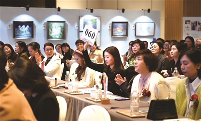 拍卖会现场气氛热烈,爱心涌动。参与拍卖的有女企协会员、新联会成员、知联会成员以及慈善联合总会会员等各界爱心人士。从第一件拍品开始,每一件拍品都有爱心人士一个接着一个举牌竞拍,从第一件6000元到第七件作品1.9万元的成交价,拍卖会也逐渐走向高潮。