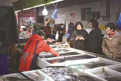 城东综合市场的一处鱼摊前,摊主李阿姨在为顾客捞鱼。李阿姨夫妻俩经营这个鱼摊多年,主要销售甲鱼、黄鱼、鲫鱼、鲢鱼等品种。她说:“做生意最重要的就是过硬的产品和口碑,只要你的鱼产品够好够新鲜、足斤足两销售,总能积累起不少回头客。”