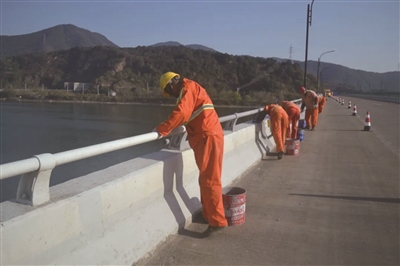 在桥梁养护上,工作人员对桥梁栏杆进行重新涂漆,增强栏杆防腐防锈性能,延长使用寿命。还对伸缩缝进行清理疏通,防止因杂物堵塞导致桥梁损坏,确保伸缩缝正常工作,保障桥梁的安全稳固。目前,已累计完成辖区内桥梁栏杆涂刷1300余米,清理20余座桥梁伸缩缝。