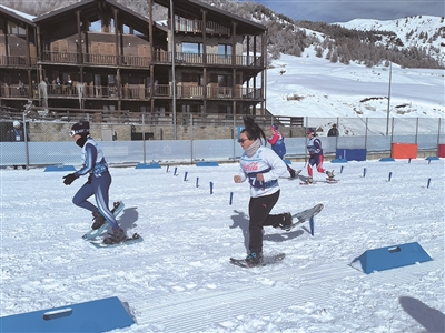 因雪儿往日积累的优秀比赛成绩和良好身体基础,在老家生活期间,杨绫子学校的老师也经常找到雪儿,邀请她参加各类体育比赛。去年下半年,雪儿被该校选中推荐,最终入选中国特奥代表团雪鞋走项目。11月起,雪儿随队先后在杭州和安吉的草地、沙地及雪场等环境开始雪鞋走训练。每周5天、每天3个小时左右的训练量对雪儿来说并不容易,尤其是在雪地上,强烈的反光给有着五六百度近视的雪儿造成了不小的困难。教练郭老师说:“雪儿特别懂事,非常刻苦,她会自觉完成所有的训练项目,不喊苦不喊累,基本不用我们操心。”