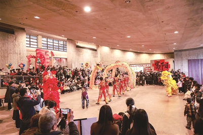 今年的元宵节,张鹏翔带着队友们又走进了富阳博物馆,给全区市民带来了一场精彩舞龙表演,有人敲大鼓、有人舞狮子、有人舞龙灯,把节日的氛围感拉满了。观众拿出手机记录下精彩的一幕幕,孩子们还试着与舞狮互动。“观众们喜欢我们的演出,就是我们坚持下去最大的动力。”张鹏翔说,观众欢呼声越大,大家舞动得就越起劲。