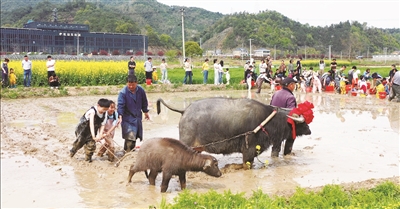活动现场,家长们抓住时机,指着一件件农具,耐心地向孩子们讲述其用途,传承先辈们的智慧。在极具传统韵味的大鼓热场、祭土地、开秧门、汇聚稻谷等仪式中,来自杭州、北京、上海、宁波、绍兴等地的40多组家庭沉醉于中国稻麦文化的独特魅力。“犁头入土三寸,就像做人要脚踏实地。”在耕作老师的悉心指导下,家长与孩子们携手扶犁耕田,泥水飞溅间,一幅现代版的南宋《耕织图》跃然眼前。据统计,活动期间,犁耕记录多达上百次,年仅3岁多的孩子成为最小的参与者,刷新了农耕体验的年龄纪录。