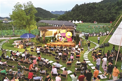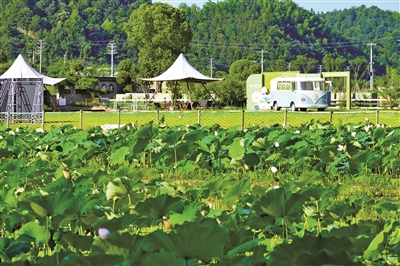 依托荷花资源,上山村创新打造“荷塘音乐季”文旅IP,融合杭州小六石欢乐园项目推出沉浸式夜游、文创市集、主题研学等十多项体验场景,累计吸引游客超百万人次,带动周边餐饮民宿收入年均增长30%。村民洪鑫中将老宅改造成农家乐,主打“荷香宴”,旺季日均接待游客200人次,年收入突破20万元。“以前在工地搬砖,日晒雨淋还挣不到这个钱。现在守在家门口就行了,日子舒坦多了”。
