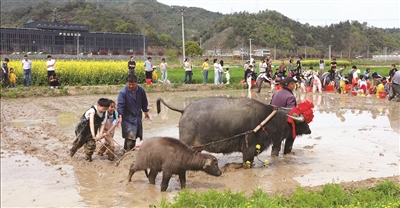 2024年,上山村与鹿山街道签订共富工坊战略合作协议,探索“品牌+资源”跨区域协作模式。今年4月5日,上山村创新推出“农耕觉醒实验”——春耕大典,通过“千年开秧门”“三代人共扶木犁”等场景,将传统农耕智慧转化为亲子教育资源,活动当天接待了来自杭州、北京、上海、宁波、绍兴等多个地市40多组亲子家庭。参与活动的家长王女士说:“孩子在田里摔了跤,反而笑着说‘农民伯伯不容易’,我觉得这比任何说教都有效。”