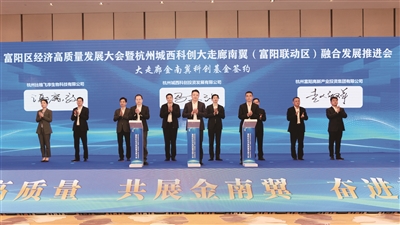 今年,富阳和城西科创大走廊管理委员会共同出台了《关于推动杭州城西科创大走廊南翼(富阳联动区)高质量发展的实施意见》,锚定大走廊“金南翼”、成果转化“首选地”、联动发展样板区的总体定位,积极推动大走廊科创资源集聚、政策先行先试等优势资源向富阳区开放共享,全面支持富阳区融入大走廊创新策源地建设,打造科技创新最活跃、成果转化最高效、产业协作最深入、融廊交通最畅达、要素流动最顺畅的“5个最”联动模式,力争一年破题起势、两年取得成效、三年加速崛起。根据《实施意见》,双方将实施“创新合作、人才共育、产业协作、金融赋能、规划融合”五大行动,积极打造标志性创新平台、成果转化首选地,加快构建开放创新生态,共建杭州城西科创大走廊富阳专精特新产业合作园(创富合作园),打造“金融+产业”融合发展试验区。