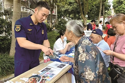 “阿姨,这把扇子您拿着,夏天用着凉快,上面还有消防安全提示,比如电动自行车千万不要入楼入户,楼道杂物一定要清理干净……” 活动现场,大队宣传员结合老旧小区常见的电动车违规充电停放、电线老化、杂物堆放等隐患问题,向过往居民发放宣传资料,并用通俗易懂的语言耐心讲解消防安全知识。“这活动太好了,扇子既实用又能学消防知识!”一位居民说道。