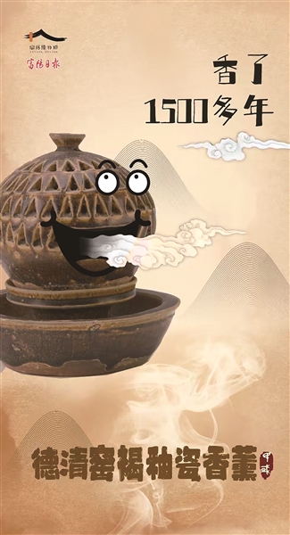 1974年富阳市民捐赠,国家二级文物。香薰炉呈球状,顶部有一小喇叭口,内空,上半部镂四周三角形孔,第四层开一倒梯形添料口,下有支柱,下有承盘,平底,施褐釉,规整别致。 (制图 黄睿)