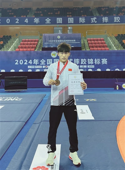 汪思铭是在六年级时被选送到陈经纶体校的,当时他就读于万市镇小,是学校足球队成员,在学校运动会上,他参加实心球、800米跑步项目,拿的都是第一名,除了运动出众,他的学习成绩也比较好。“小时候贪玩,觉得去体校,可以去玩。”汪思铭坦言,刚开始锻炼比较苦,身上酸痛反应特别明显,但他不后悔自己的选择。“摔跤对运动员来说是比较全面的考验,需要具备强大的心理素质、技巧以及体能。”汪思铭在2015年获得了全国青少年赛第一名,次年加入了省队。