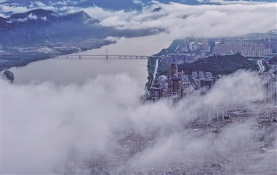 这几天,雨幕之中,富春江畔频现平流雾景观:江面上雾气氤氲,将两岸建筑晕染成水墨画卷,楼宇在云雾间若隐若现,宛如仙境。从气象学角度看,这种江雾属于平流雾,是暖湿空气流经较冷的地面或水面时,遇冷液化成小水滴形成的自然现象。