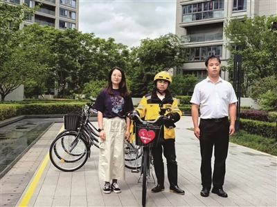 转机始于今年4月的三方联席会议。许敏介绍,在社区党组织牵头下,居委会、业委会、物业齐聚商议,最终确定“专属自行车+智慧导航+保温配送”综合方案。小区设置5辆外卖小哥专属自行车,每辆车有导航支架并配备保温箱,最贴心的是,每辆车都配有小区楼栋分布图,这为外卖小哥节省了不少“找楼”的时间。