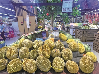 记者了解到,今年泰国榴莲主产区迎来了“丰产季”,榴莲产量预计比去年增长超30%。由于榴莲大批量上市,加上邻国越南榴莲产量增加,今年榴莲价格是近年来最低的。特别是中老铁路等运输方式稳定高效,有效降低了东南亚榴莲出口的运输损耗。与此同时,从今年1月起,中国海关加大检查力度,要求所有进口批次的榴莲必须带有合格检测报告才能通关。这也意味着,今年的榴莲吃起来更放心。