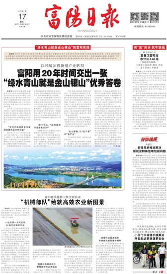 富阳用20年时间交出一张 “绿水青山就是金山银山”优秀答卷