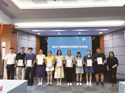 “针对社区内新兴业态集聚、青年群体流动、管理主体多元而带来的诸多服务难题,我们以产业园、楼宇内的企业和物业相关负责人为基底,选拔聘任了36位社区楼宇长,作为社区与企业之间的‘知心人’。”硅谷小镇商务社区党委书记叶飞表示,未来社区、物业、楼宇长将成为硅谷小镇商务社区治理的“三驾马车”,让“大事不出社区,小事不出楼宇”,真正打通为企业和人才服务的“最后一米”。