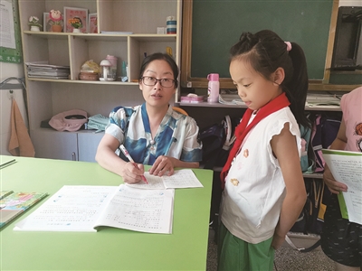 “低段班主任更像一个保姆,吃中饭要教怎么拿饭盒,做值日要手把手地教怎么扫地,教完扫教室还要教扫包干区。”邵春红说,虽然累,但她总是乐在其中,“因为我看到了每个孩子在我手把手地指导下学会了扫地,学会了自己整理书包,到了中高段,他们就能自己主动做好值日工作,我很欣慰。”
