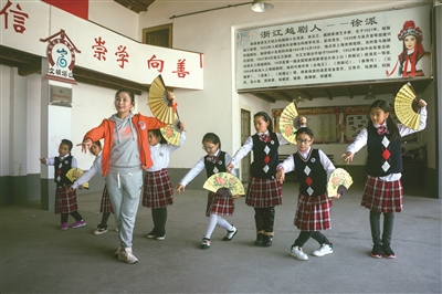 这是富阳“戏曲进校园”的成果。如今已经退休的区文化馆干部陈澄一直执着于戏曲的传承,2004年陈澄做过一次调研,问小学生是否认识徐玉兰,竟无一人知晓,但提到迈克尔·杰克逊,孩子们都能唱上几句。这让她意识到,越剧需要从娃娃抓起。此后,富阳启动“戏曲进校园”行动,富春四小成为试点学校,聘请剧团退休编导与演员担任指导老师。一年后,再去学校调研,孩子们都能哼起越剧选段。“我们不是要培养专业演员,而是要培养观众。”陈澄说,只有让下一代了解越剧,这门艺术才有长远生命力。