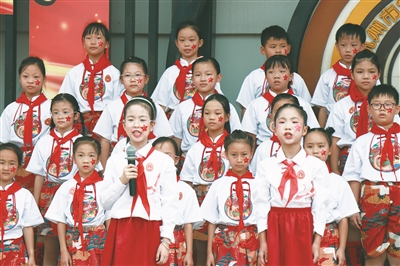 “同学们,你们知道红领巾的由来吗?它是用革命先烈的鲜血染成的,承载着‘强国复兴’的使命,我们戴上红领巾,就要立志争当新时代好少年!” 在一年级的教室里,六年级的哥哥姐姐化身 “小老师”,为弟弟妹妹们带来别开生面的队课。