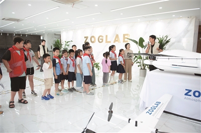 一进展厅,孩子们的目光就被一台造型酷炫的无人机吸引。“老师,它是用来做什么的”“平时在哪里会用到这种设备呢”……此起彼伏的童声充满整个展厅。面对求知若渴的“硅宝”们,企业工程师用孩子们能理解的语言耐心解答:“这可不是普通的无人机,它是我们的‘气象小卫士’,可以飞到云层里测量温度、湿度等气象数据。”