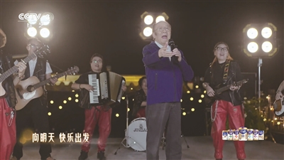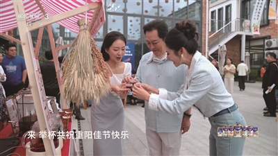 就在主持人和唐国强体验完市集,准备离开之际,遇上了正在八一村共享中心广场上欢快起舞的老年舞蹈团。他们迅速融入其中,与八一村的“姐姐们”一起跳起了健身操,在《青春修炼手册》歌曲的伴奏下,现场笑声不断,化作一片青春洋溢的海洋。